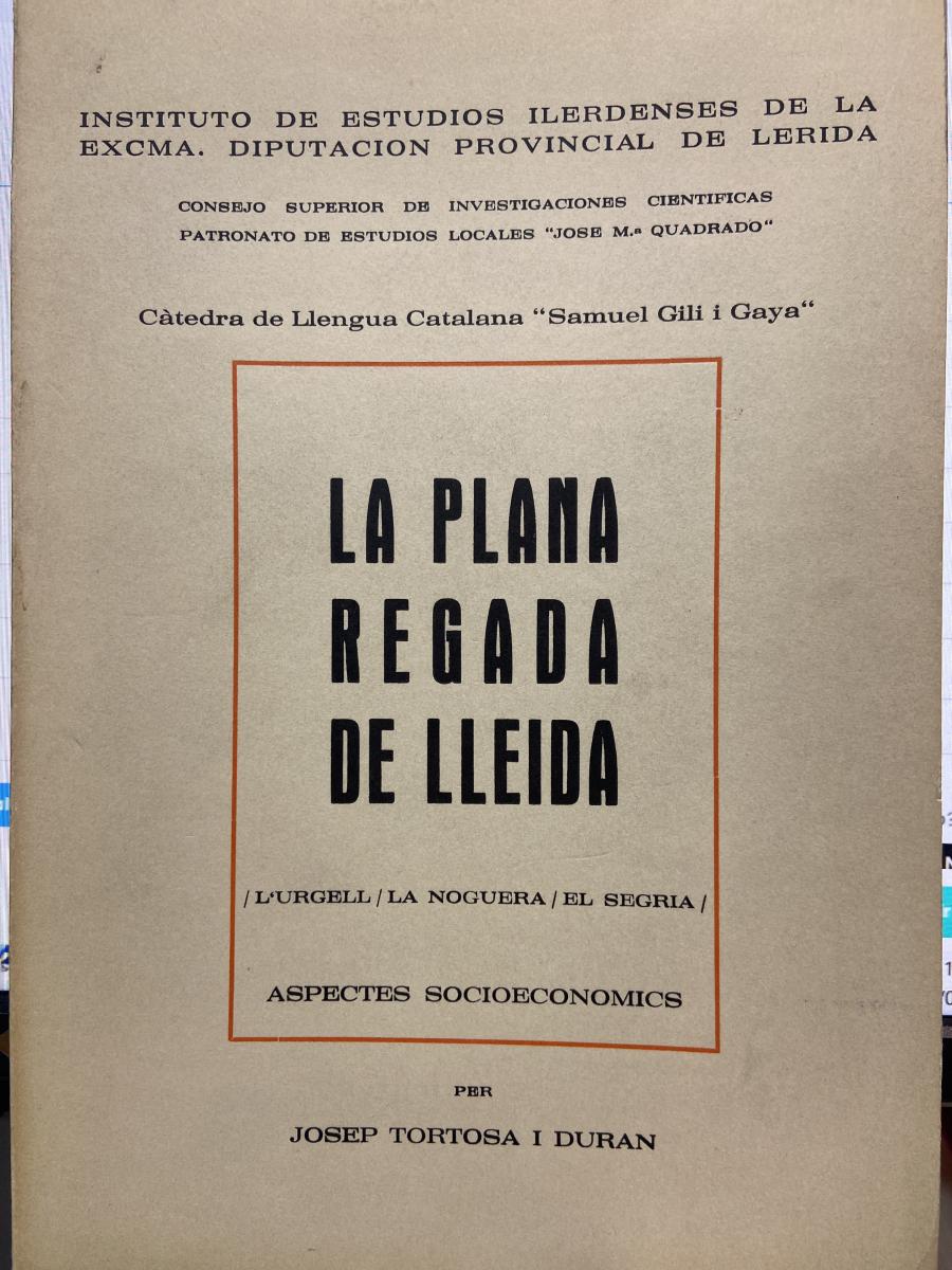 LA PLANA REGADA DE LLEIDA. L'Urgell, La Noguera, El Segria. Aspectes Socioeconomics.
